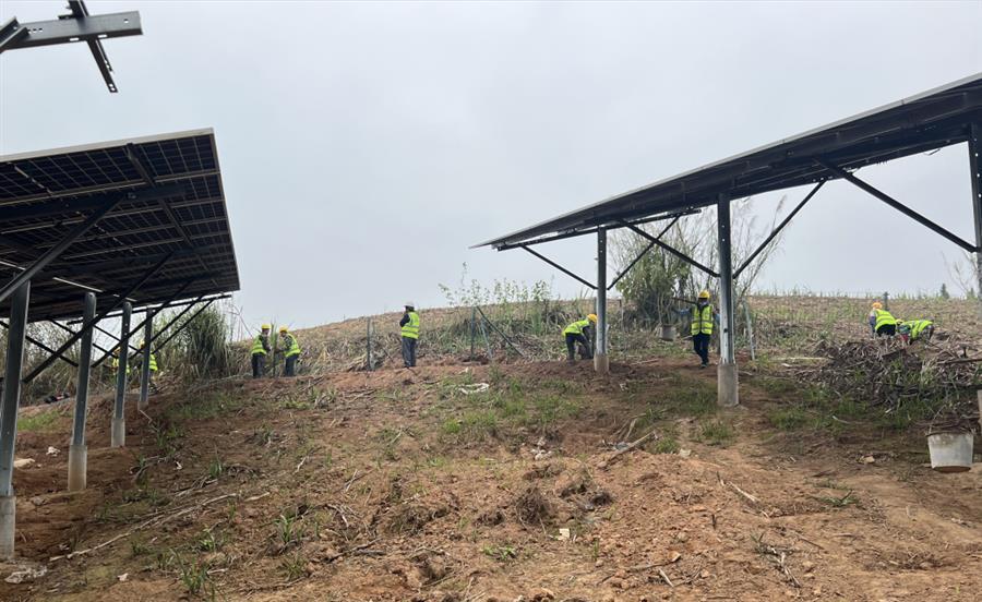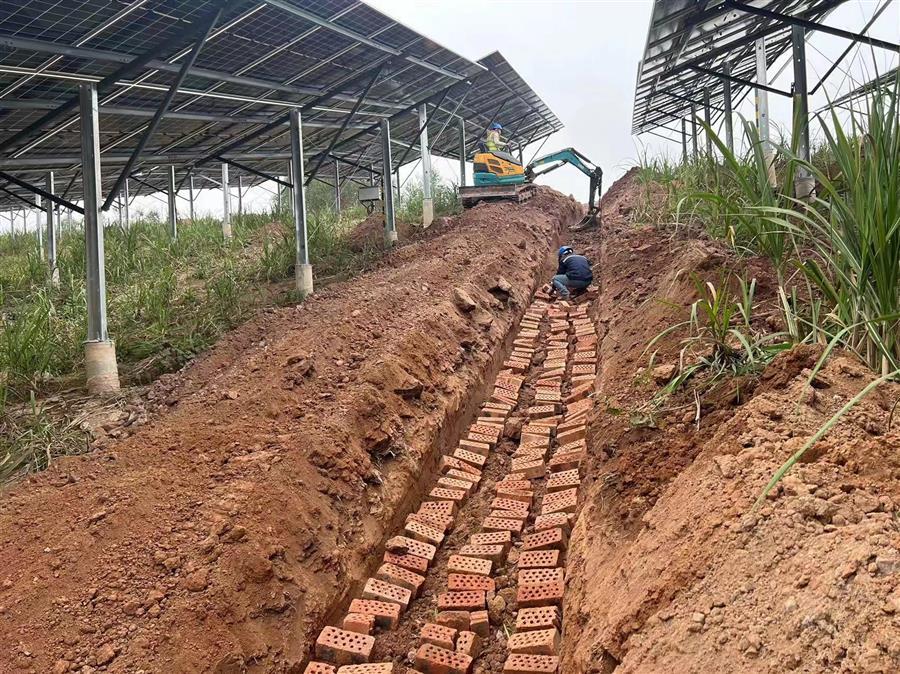 節(jié)后復(fù)工復(fù)產(chǎn)以來,項(xiàng)目接地網(wǎng)開挖敷設(shè)完成1235米,低壓電纜敷設(shè)完成1285米,光伏專用電纜敷設(shè)完成14760米,圍欄安裝1030米。
