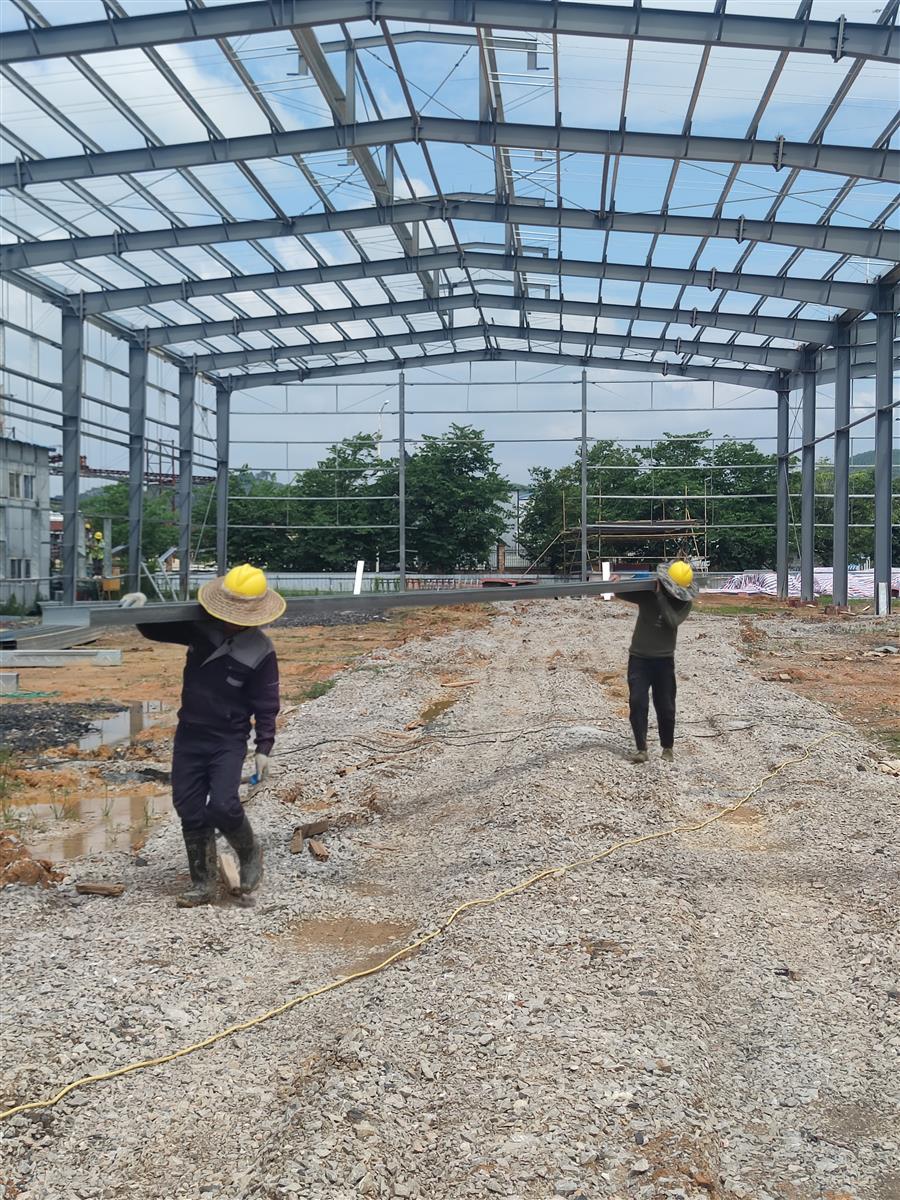 項(xiàng)目總建筑面積為6519.2平方米,建設(shè)內(nèi)容包含道路工程,綠化工程、室外給排水工程、室外電氣工程等。目前,項(xiàng)目廠房基坑開(kāi)挖完成80%;22#樓地基基礎(chǔ)、水電預(yù)埋已完成;主體結(jié)構(gòu)鋼梁鋼柱已安裝完成,檁條、拉條完成90%。