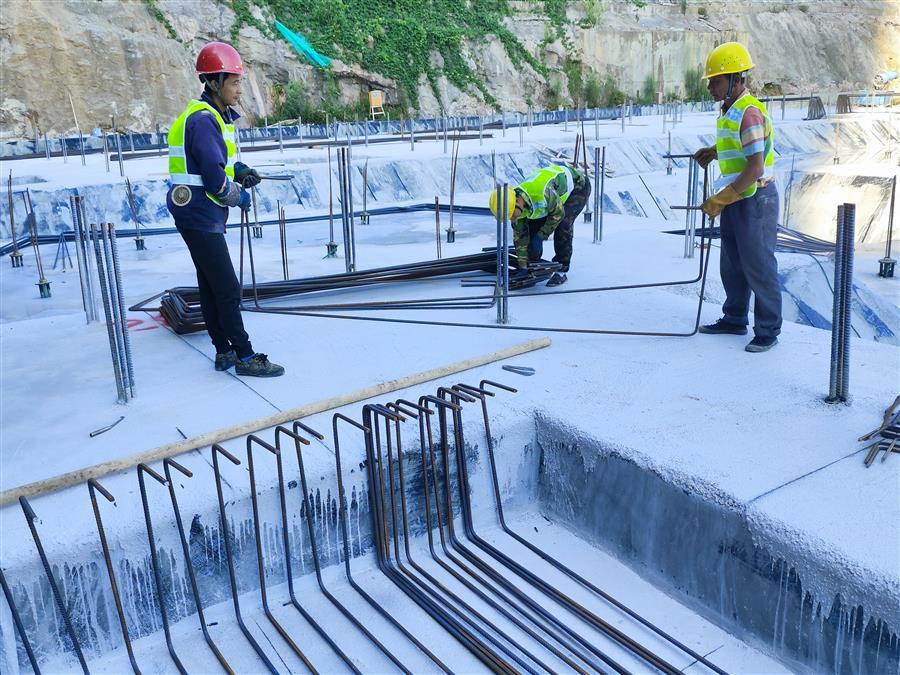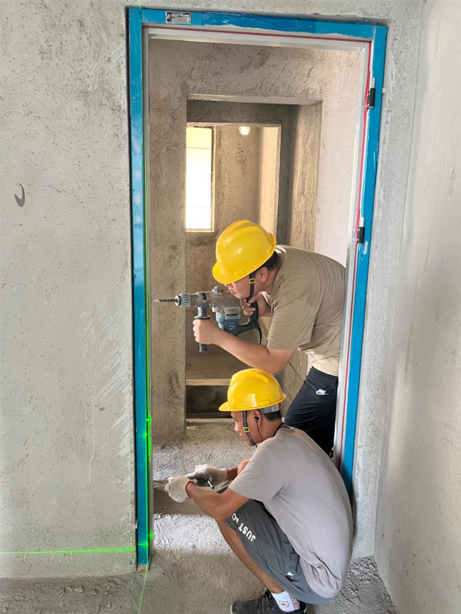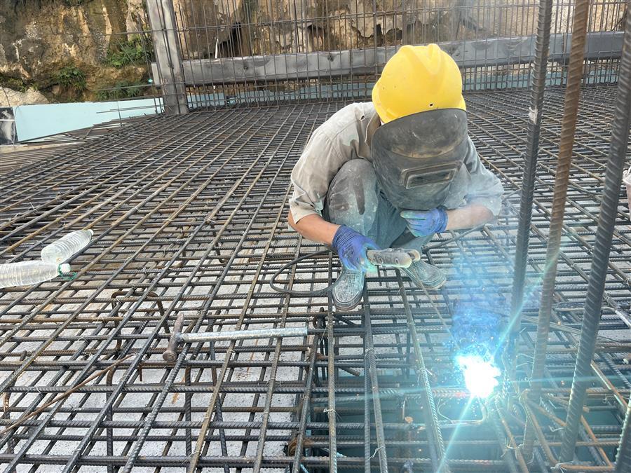 在項(xiàng)目現(xiàn)場,工人們頂著烈日堅(jiān)守崗位。鋼筋綁扎工人一手固定住鋼筋,一手熟練地把鋼筋綁扎好;電焊工人“全副武裝”,一手舉著防護(hù)面罩,一手拿著焊槍嫻熟作業(yè);抹灰工人飛舞著抹灰刀,熟練地向墻面抹水泥砂漿;安裝工人操作電鉆將門窗穩(wěn)穩(wěn)地安裝到位……熱火朝天的大干現(xiàn)場依然井然有序。