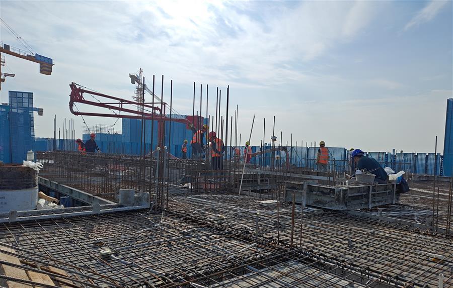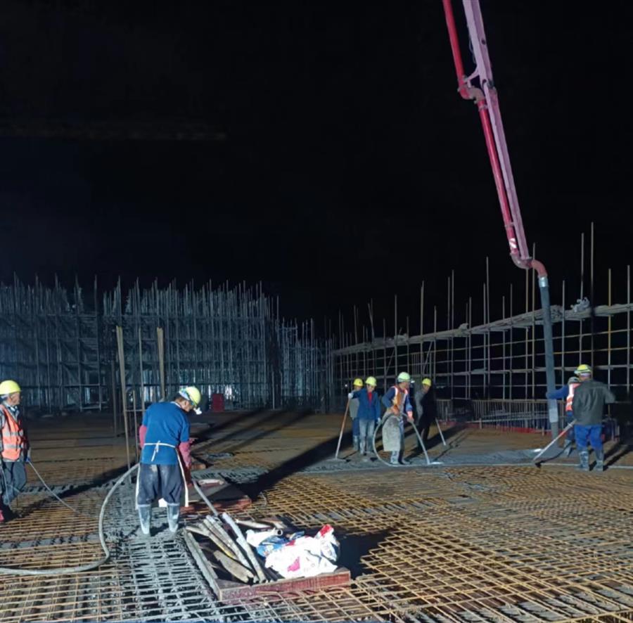 為確保工程快速推進(jìn),項(xiàng)目部實(shí)行兩班制,科學(xué)制定了夜間專項(xiàng)施工方案,倒排工期,規(guī)劃任務(wù)單,明確了各施工點(diǎn)的建設(shè)內(nèi)容、時間節(jié)點(diǎn)以及相關(guān)責(zé)任人,有序推進(jìn)夜間施工作業(yè)。目前,中試車間一層二次結(jié)構(gòu)砌筑完成;1#、2#生產(chǎn)車間正在搭設(shè)49-57軸模架及進(jìn)行40-45軸剛性地面施工;宿舍樓在進(jìn)行4層梁板砼澆筑和頂板模板、鋼筋施工;倉庫在進(jìn)行2層梁板砼澆筑和2層模架搭設(shè)。累計(jì)完成產(chǎn)值約1.15億元,完成合同造價的23.5%。