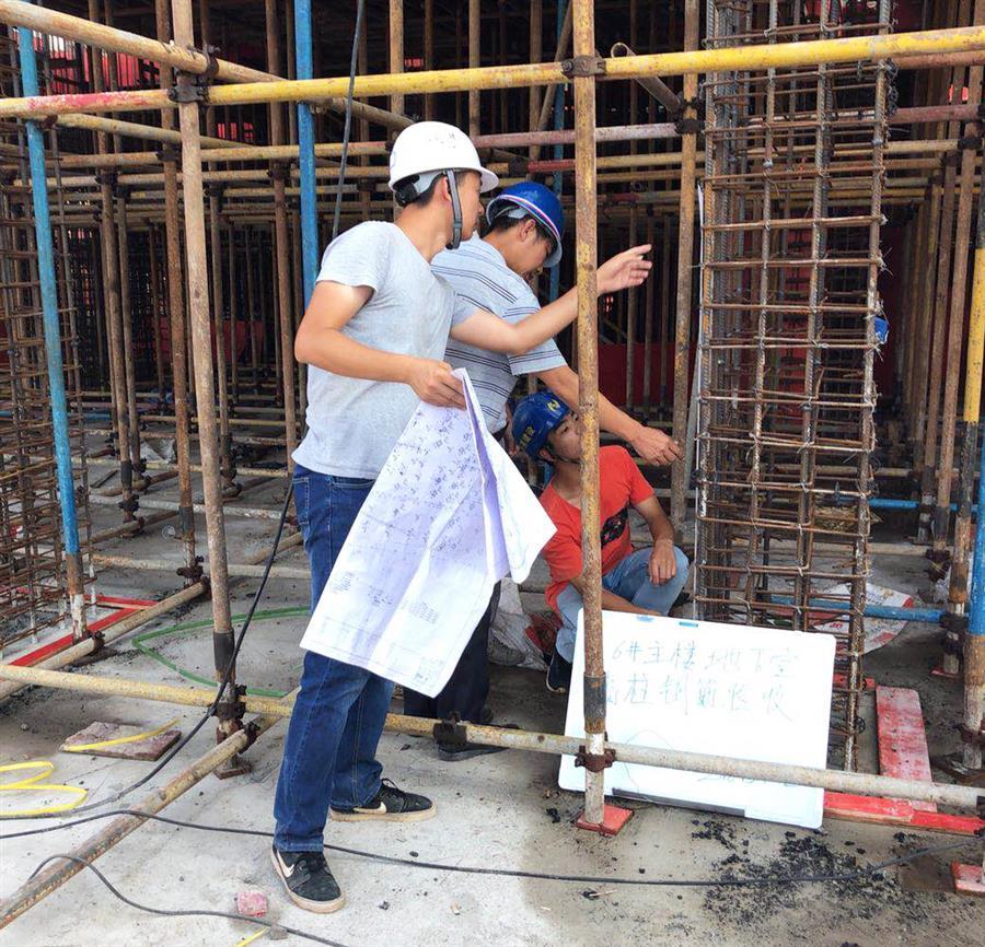 6月18日,在桂華分公司承建的梧州佛子時(shí)代廣場(chǎng)項(xiàng)目現(xiàn)場(chǎng),當(dāng)空烈日讓偌大的工地一片熾熱,焊花飛濺,工程車來(lái)來(lái)往往,工人們揮汗如雨。雖然施工作業(yè)已經(jīng)避開了高溫時(shí)段,但工人們?nèi)员缓顾粤搜劬?,濕了衣服。盡管這樣,大家仍堅(jiān)持“全副武裝”,手套、防護(hù)用具,安全帽,一樣都沒(méi)有少,自覺(jué)遵守安全文明施工相關(guān)規(guī)范。入行兩年的施工員趙俊財(cái)抹了一把汗說(shuō)道:“剛參加工作時(shí),不能和家人一起過(guò)節(jié)還挺難受的,后來(lái)把心態(tài)調(diào)整好了,想著只要家人安好,其實(shí)比什么都重要,趁著年輕,還是應(yīng)該多奮斗。”看著一米八大個(gè)的他手拿圖紙和卷尺,蜷縮著身子,蹲在空間有限且熱得發(fā)燙的平臺(tái)上仔細(xì)檢查剛剛綁扎好的鋼筋籠,驕陽(yáng)烤得他黝黑的皮膚泛出一層水光,襯著那還略顯年輕的臉龐,顯得熠熠生輝。