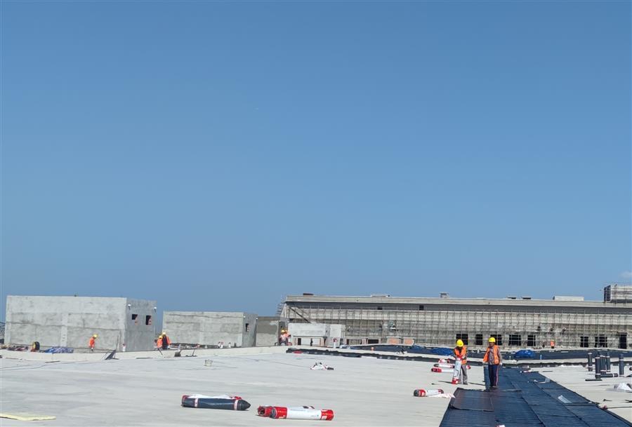 走進(jìn)50Gwh鋰電池產(chǎn)業(yè)基地(新能源電池標(biāo)準(zhǔn)化廠房)一期項(xiàng)目施工現(xiàn)場(chǎng),機(jī)器轟鳴,工程車來(lái)回穿梭,施工人員忙碌作業(yè),水電消防安裝、屋面防水卷材鋪貼、內(nèi)外墻抹灰、門窗窗框安裝、抗裂砂漿和室外管網(wǎng)路基施工等工作緊張有序地進(jìn)行中。為應(yīng)對(duì)項(xiàng)目體量大、工期緊的情況,項(xiàng)目部緊扣節(jié)點(diǎn)目標(biāo)掛圖作戰(zhàn),逐項(xiàng)細(xì)化分解工程量,量化任務(wù)清單,制定日工作進(jìn)度表,錨定目標(biāo)精準(zhǔn)發(fā)力,做到畫“圖”定責(zé)、按“圖”推進(jìn)、看“圖”指揮,實(shí)現(xiàn)以日保周、以周保月、以月保季,確保了目標(biāo)任務(wù)按序按時(shí)推進(jìn),曾以不到5個(gè)月的時(shí)間實(shí)現(xiàn)了項(xiàng)目包含的15個(gè)單體工程全面封頂。