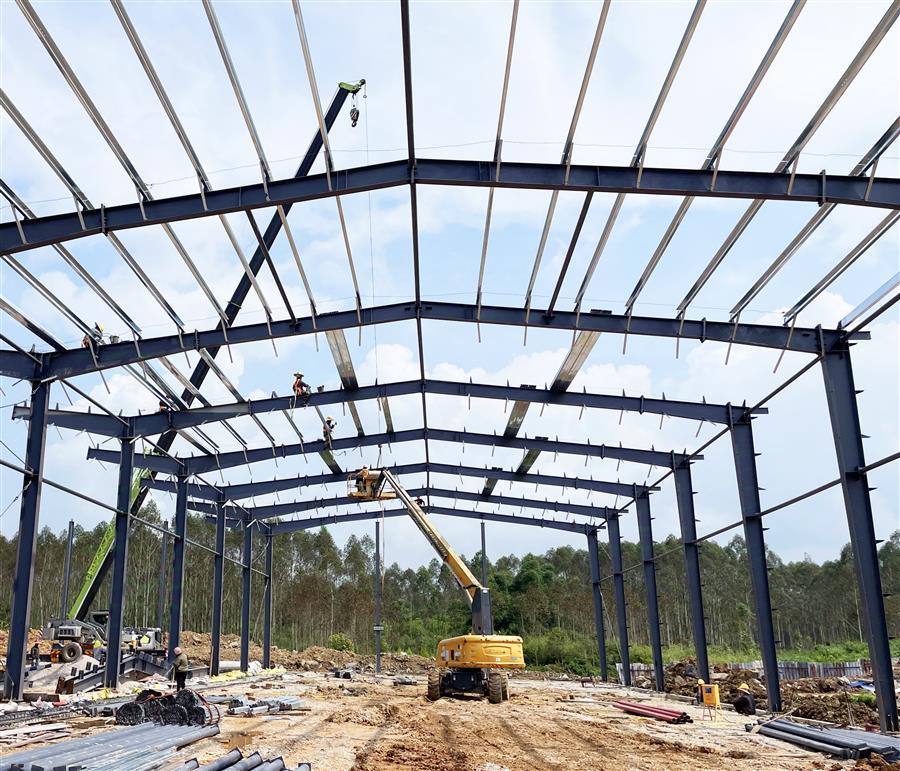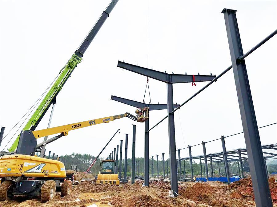 項目開工以來,為加快建設進度,項目部嚴格按照公司相關(guān)要求進行施工管理,克服重重困難,制定科學的施工組織計劃,由專員監(jiān)督指揮施工。該項目占地面積約2萬平方米,總建筑面積1.2萬平方米,主要建設一棟鋼架結(jié)構(gòu)標準廠房,配套建設道路、圍墻、綠化、電氣、消防及給排水等設施。目前已完成基礎承臺及地腳螺栓的預埋,鋼結(jié)構(gòu)安裝完成40%,配套建設施工內(nèi)容完成30%。