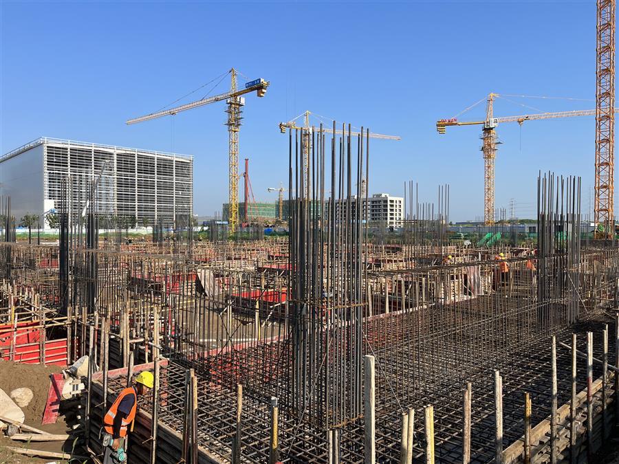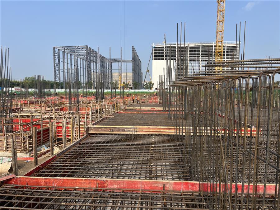 為確保項(xiàng)目建設(shè)順利開展,項(xiàng)目部制定科學(xué)的施工方案,合理安排施工時(shí)間,認(rèn)真抓好安全生產(chǎn)工作,嚴(yán)把質(zhì)量關(guān)。目前,項(xiàng)目已完成了3#高標(biāo)庫基礎(chǔ)混凝土墊層、4#分揀中心及6#冷庫的 CFG 樁、2#分揀中心基礎(chǔ)混凝土墊層等施工內(nèi)容,2#高標(biāo)庫基礎(chǔ)擋墻鋼筋綁扎已完成100%,模板安裝已完成70%。