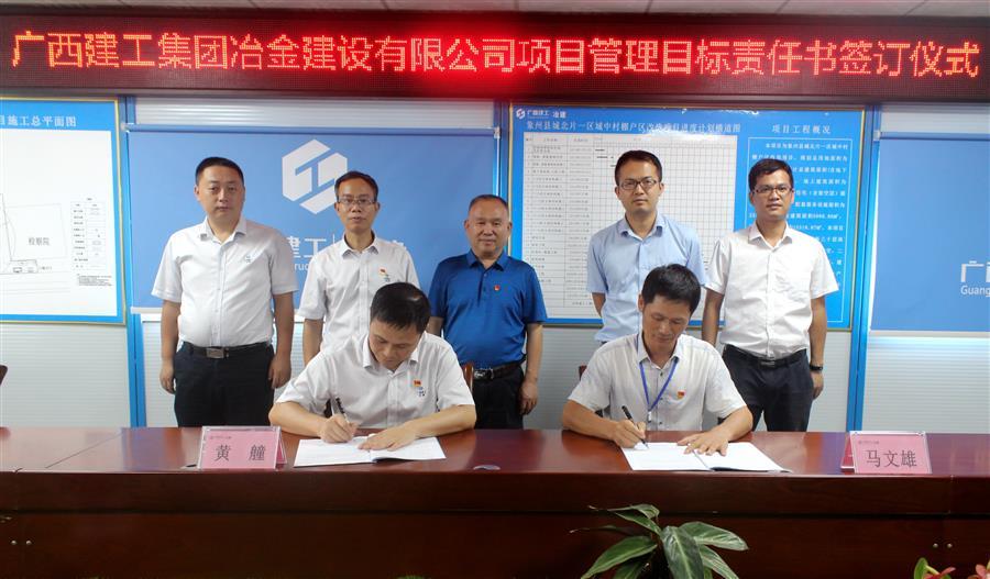 近日,公司項目管理目標責任書簽訂儀式在象州縣城北片一區(qū)城中村棚戶區(qū)改造項目(一期)項目部舉行。公司副總經(jīng)理唐峰,總經(jīng)理助理、副總工程師陳冠東及公司相關處室、分公司負責人參加。