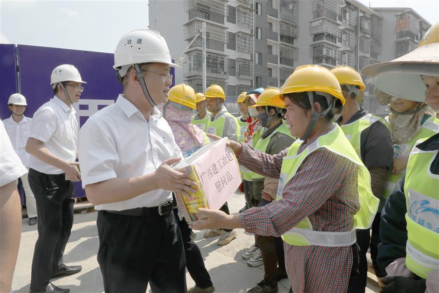 夏日炎炎,高溫不斷,工作不停,節(jié)奏不減。隨著高溫天氣的到來(lái),冶建公司2023年“送清涼”慰問(wèn)活動(dòng)正式開(kāi)啟。7月27日,冶建公司董事長(zhǎng)、黨委書(shū)記覃振華,帶著清涼慰問(wèn)品,到第七分公司承建的原柳州市第三棉紡織廠集資建房項(xiàng)目施工現(xiàn)場(chǎng),慰問(wèn)持續(xù)戰(zhàn)斗在一線的勞務(wù)工人和項(xiàng)目管理人員。