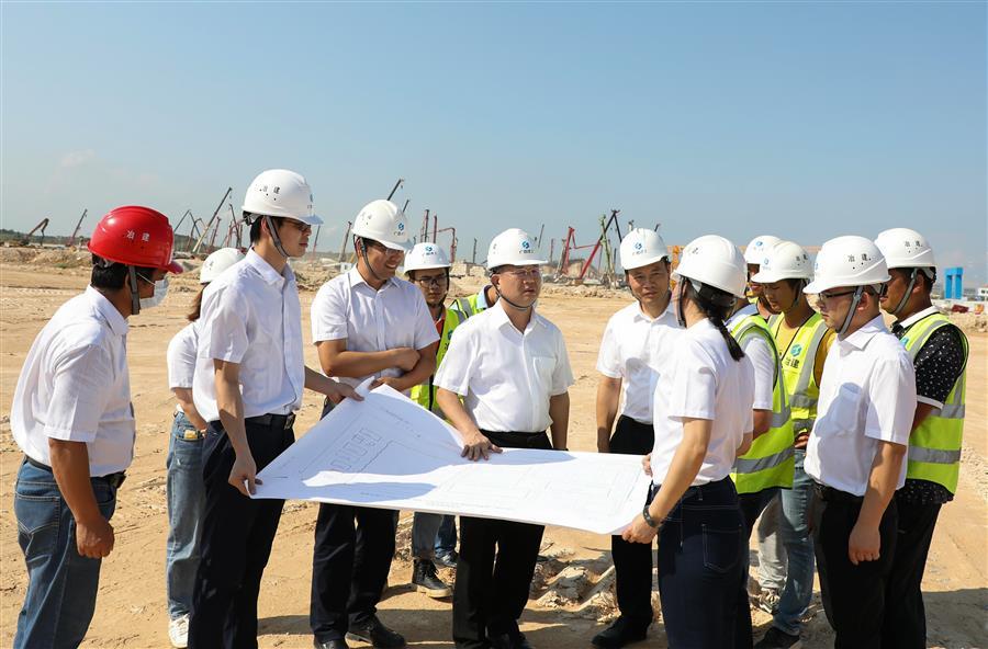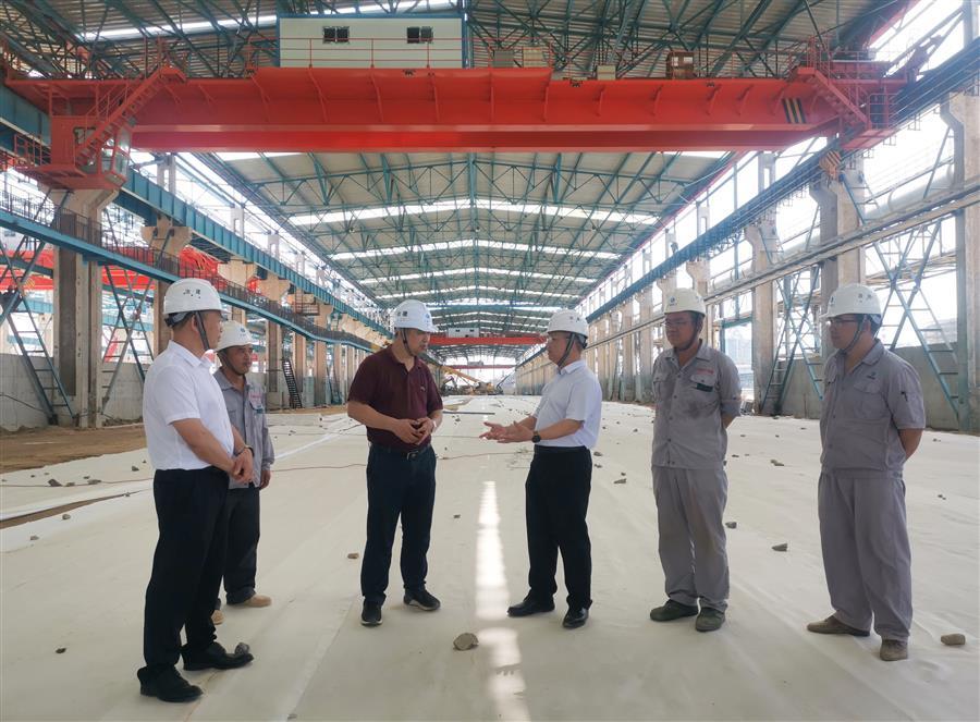 覃振華在防城港鋼鐵基地項目(一期)廢鋼處理系統(tǒng)金屬材料加工配送中心廠房及公輔設施建設項目現(xiàn)場了解情況