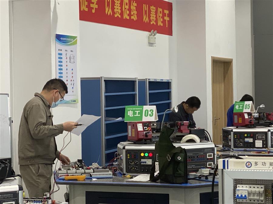 公司選派兩名員工參加本次大賽的電工項(xiàng)目及電氣安裝項(xiàng)目比賽,比賽通過理論知識(shí)考試和現(xiàn)場(chǎng)實(shí)操考試形式進(jìn)行,現(xiàn)場(chǎng)實(shí)操考試以機(jī)電設(shè)備事故處理的形式開展。比賽要求參賽選手在規(guī)定時(shí)間內(nèi)完成相同的任務(wù),速度快、操作準(zhǔn)、質(zhì)量高者獲勝。