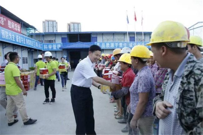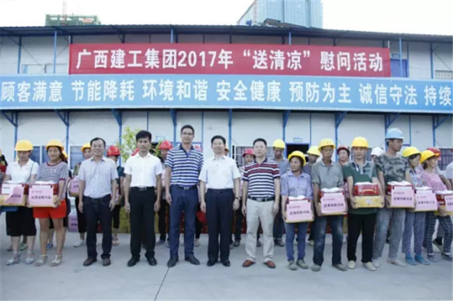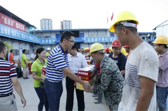 柳州市高新區(qū)科技園專家公寓樓工程由我司桂華分公司承建。8月7日下午,廣西建工集團副總經理侯立林冒著高溫酷暑,專程從南寧前來項目建設現場給一線職工和農民工“送清涼”,公司領導歐志永、賴海標、廖立波參加活動。130多份價值9000多元的慰問品,在十多分鐘的時間里,全部發(fā)放完畢。